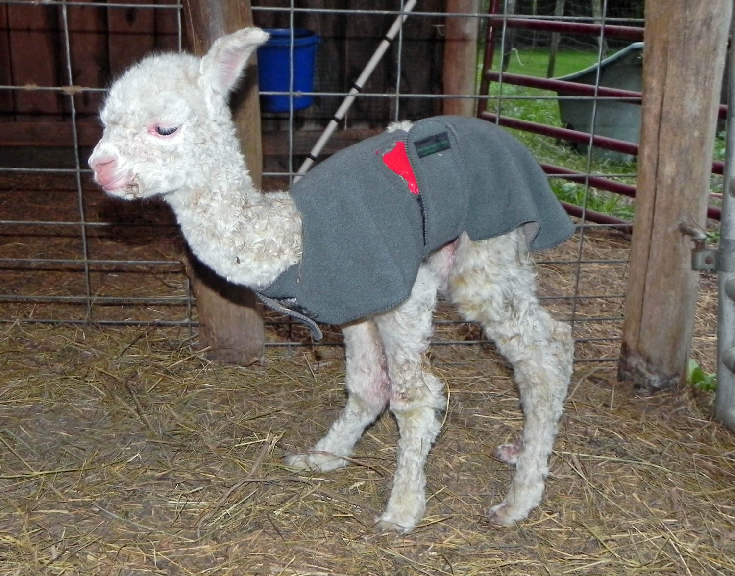 Today, almost a week later, he is doing much better and is romping around the pasture with the female cria who was born the previous week.