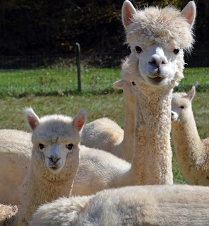 The other big news, which is closer to home for me, is that I have a deposit check from a man who is buying 12 of my remaining 17 alpacas. I have been wanting to make things simpler, especially since my sons live so far away, and this will definitely make things a little easier. But is is so hard to think about having only 5 alpacas out there after having had them for almost 17 years. The ones who are staying are Chiquita, 17 years old, Peg and Bodhi who will both be 17 in the spring, Truffel, who doesn't belong to me and is getting up there in age and Lightning, our white male. The buyer does not want a male. So mostly seniors who deserve to stay here and be buried here. The rest of the herd will be leaving for Tennessee in January. This weekend, Sam and I need to microchip 8 of them and Monday the vet is coming to do health certificates to make them legal to be imported into Tennessee. It is hard to say what might come along to live in our soon to be empty pastures. I had planned to get some sheep, but with traveling to the west coast a couple times a year, spending time with my mom in western Ohio and going to agility trials, I think it will be easier to just buy lamb and wool as needed.